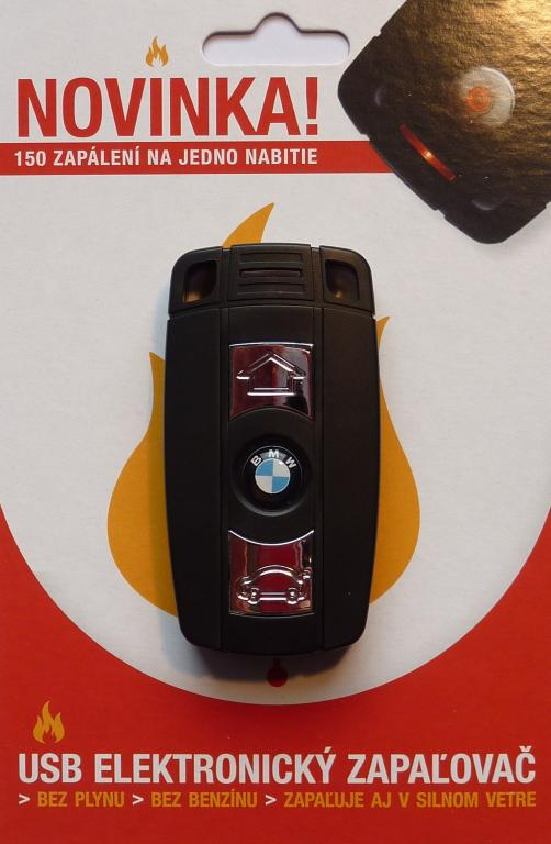 Zapaľovač v tvare BMW kľúča, pripaľovanie cigariet je o elektrickú špirálku : po potiahnutí krytu s logom BMW sa rozžhaví špirálka a cigareta sa pripáli o rozžhavenú špirálu, je to rýchly proces trvá to len 1 sekundu..Zapaľovač je na USB nabíjanie, nabíja sa cez USB vstup v počítači alebo cez USB vstup v nabíjačke smartfónov. Na jedno nabitie vydrží 150 zapálení cigariet..Výhodou je , že zapaľuje aj v silnom vetre, keďže nemá plameň. Vhodný darček pre každého. Ihneď skladom.